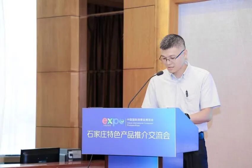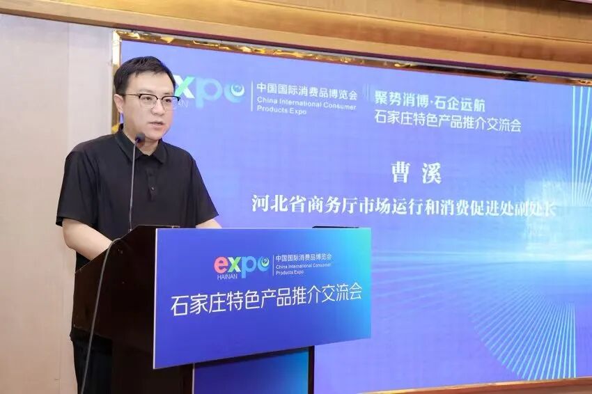 交流会由石家庄市商务局副局长杜铁行主持,现场嘉宾齐聚、氛围热烈。河北省商务厅市场运行和消费促进处副处长曹溪率先发表致辞,立足河北消费产业发展现状与特色产业优势,阐述了本次河北组团亮相消博会、举办专场推介会的核心意义,表达了深化冀琼经贸往来、推动河北优质产品走出省外、拥抱国际市场的美好愿景与坚定决心。